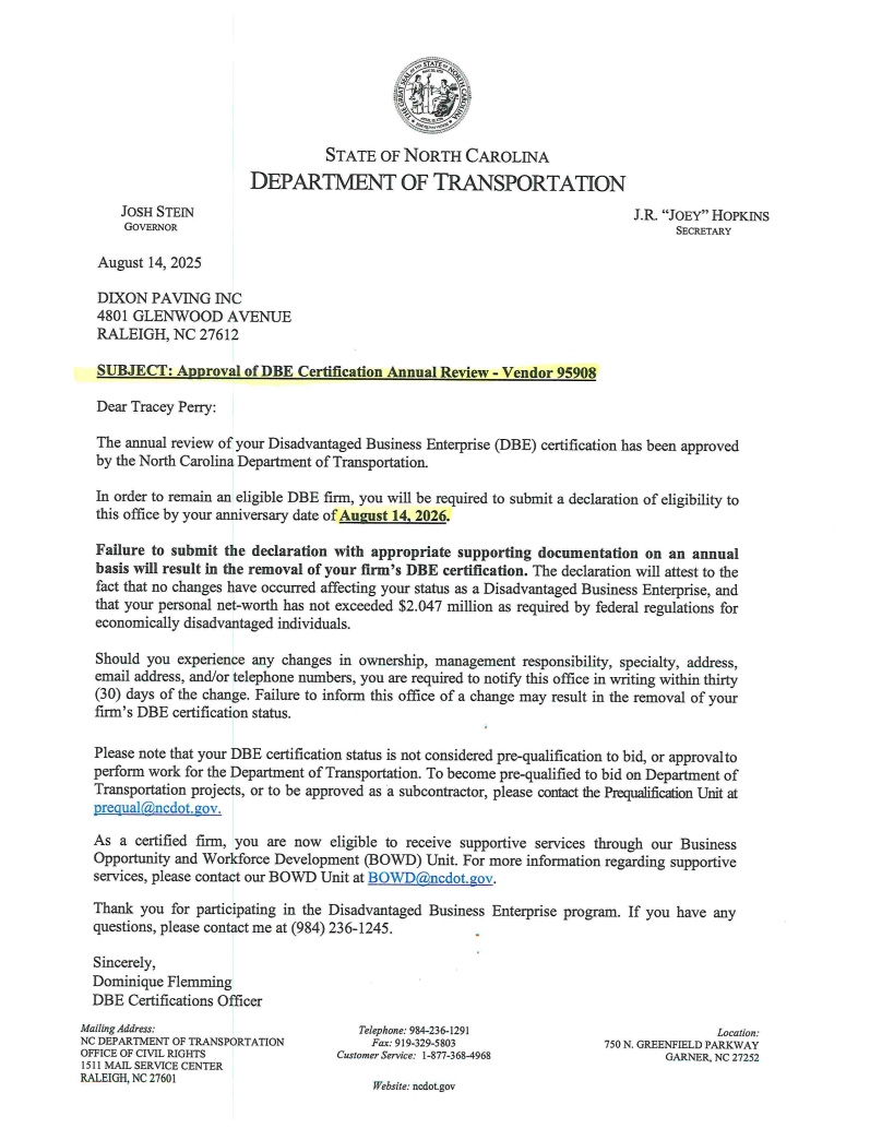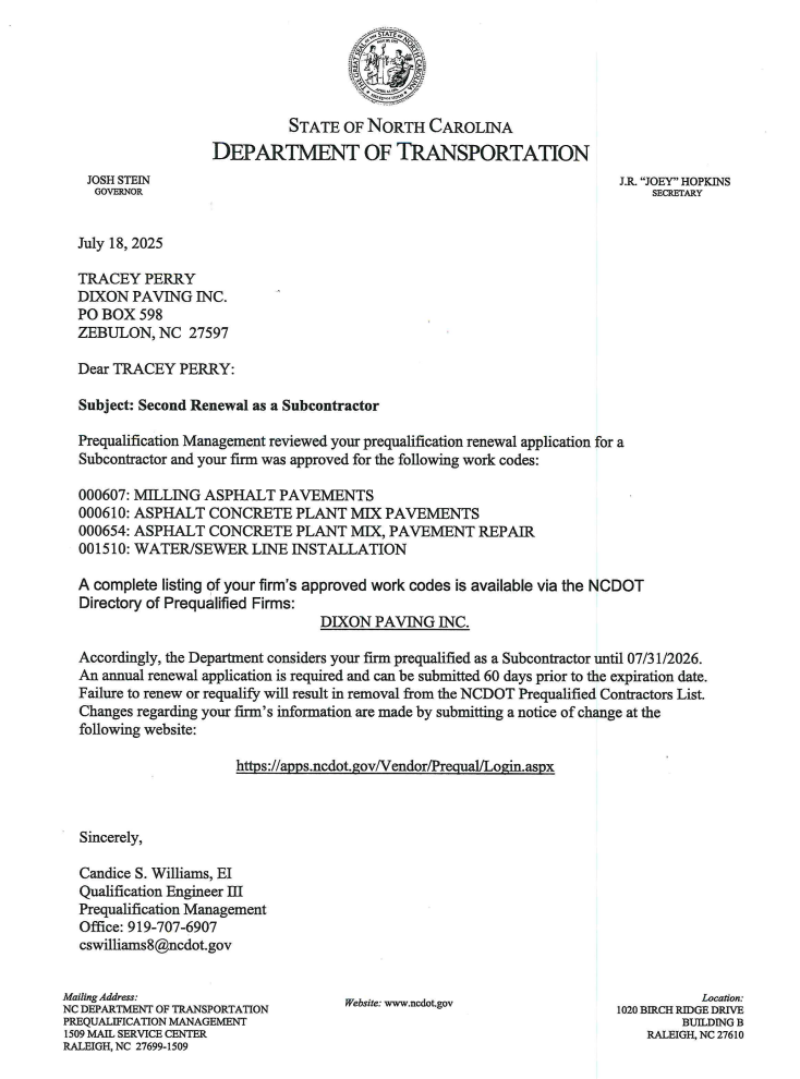 Dixon Paving & Milling Inc. is a family-owned and operated company built on hard work, integrity, and performance. Through strategic investment in cutting-edge equipment and advanced technology, we’ve positioned ourselves as a leader in paving, milling, and concrete services across the Southeast.